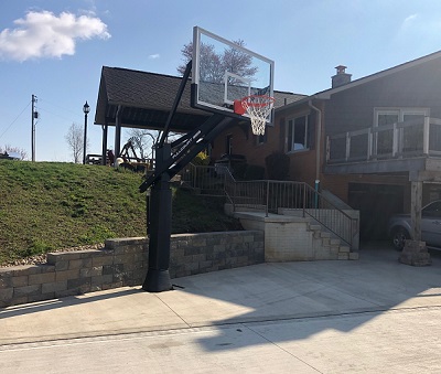 ADJUSTABLE ARM: Spring-Assisted, Rear-Crank adjustable extension arm with 60" of extension from the pole. The rear crank uses a premium-grade worm-gear design AND a spring system for a very easy and smooth rim height adjustment. Adjusts from 5' to 10' with easy to read height indicator. The crank handle is lower to the ground so younger kids can easily crank it too.