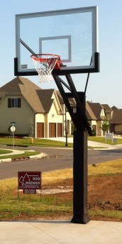 - BACKBOARD: 60" X 42" X 1/2" Tempered Glass Backboard. Unheard of 42" of regulation height on a 60" wide backboard to be able to practice shots off the top of the glass like in a game. Clear-View design, no distracting bars behind the backboard.The backboard has a lifetime warranty against breakage during dunking because the rim is bolted directly to the pole system and not to the backboard. You don't have to worry if someone hangs on the rim. Free premium bolt-on backboard padding is included (170.00 value).