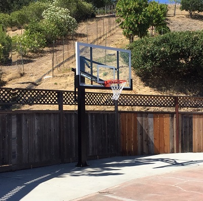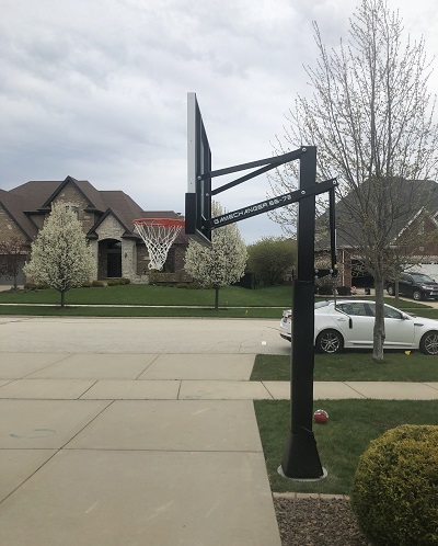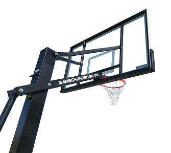 GAME CHANGER 72 by Ironclad Sports, Inc. 72" X 42" Regulation Size Tempered Glass Backboard. One Piece 6" X 6" Pole. Powder Coated Finish - Lifetime Warranty! Rim Lowers to 7-1/2' Feet.