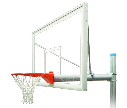 - EXTENSION ARM: 4-1/2" O.D. galvanized schedule 40 steel tubing. 1-5/8" dia. backboard support braces. Direct mount goal design. Regulation 48" of backboard offset from the pole. The adjustable extension arm is attached to the pole using two heavy duty U-bolts allowing the flexibility of adjusting the arm if needed for court resurfacing or putting the rim at a lower height. Tools and ladders are required for adjustment.